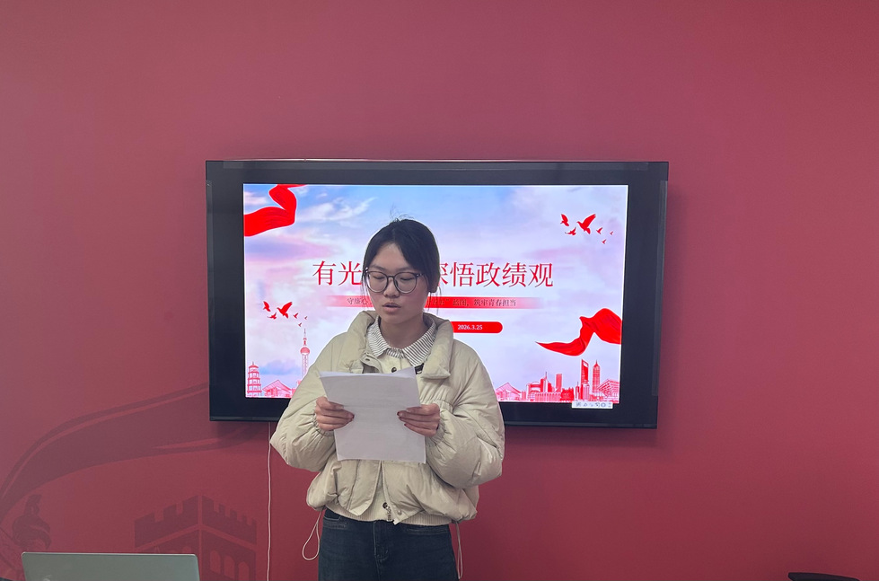 3月25日下午,人前露出 学生党支部在研习书院举行“有光党课·深悟政绩观”专题党课。学生党支部党员和入党积极分子参加,会议由学生党员徐新雨主持。