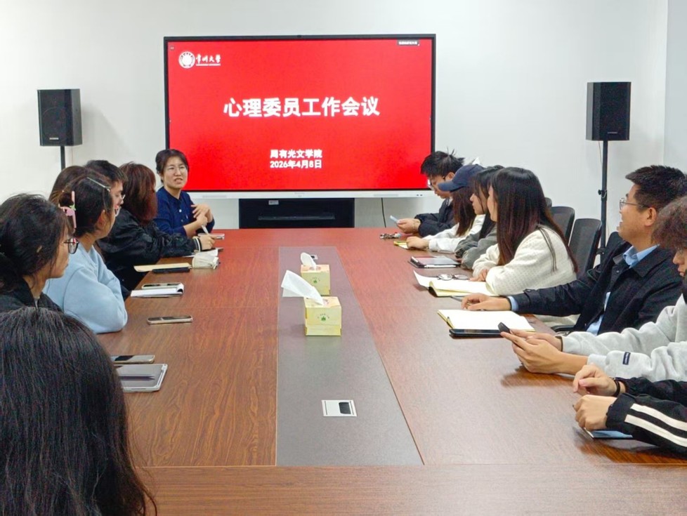 4月8日晚,人前露出 在立言楼334会议室召开2026年春季学期心理委员工作会议。人前露出学工办主任张燕红、辅导员程向君及各班心理委员参加会议,会议由张燕红主持。