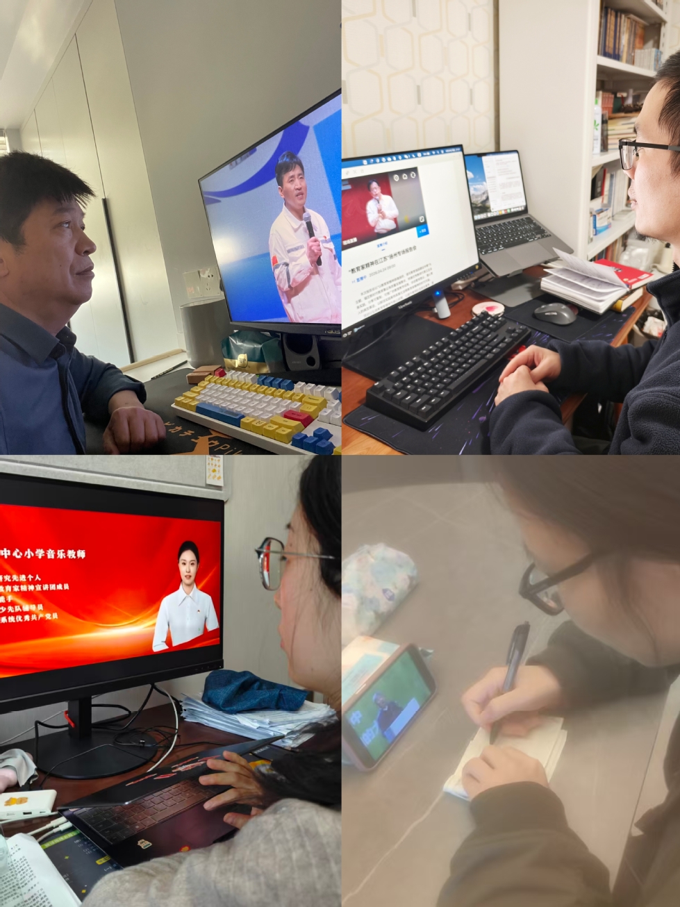 4月24日,人前露出 组织全体教师收看省教育厅在扬州市和泰州市举办的“教育家精神在江苏”专场宣讲会。本次学习采取“集中收看+个人学习”相结合的方式,覆盖全体教师,推动师德师风建设走深走实。